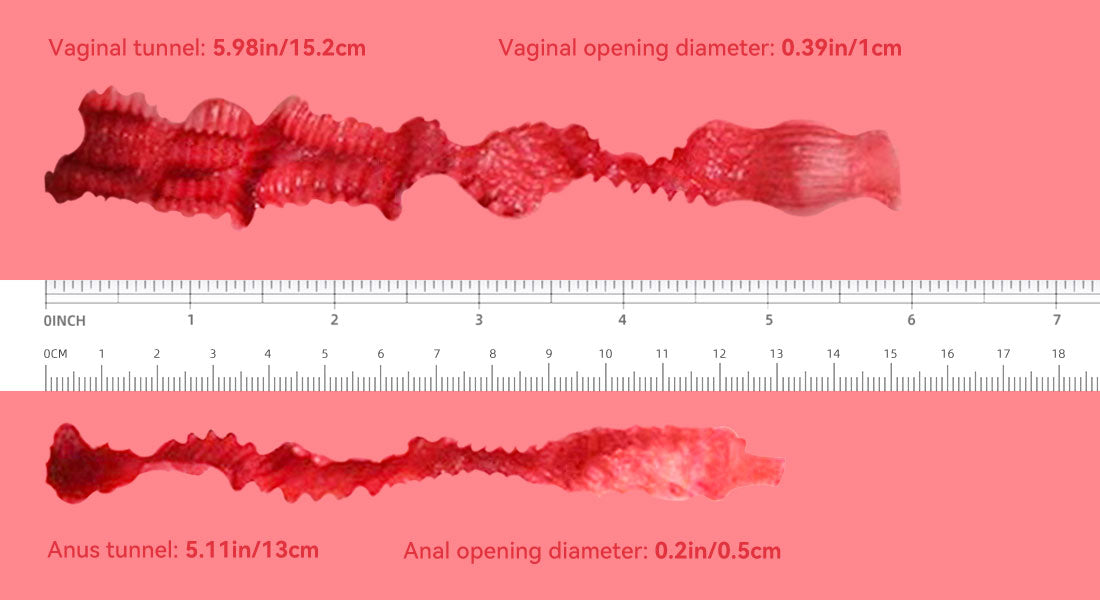 彼女の2つの穴には、多くの隆起部や筋があり、次々と違う刺激を生み出す部位にきっと驚くことでしょう。封をされたデザインなので、掃除機に近い吸引力を生み、刺激を高めてくれるでしょう。