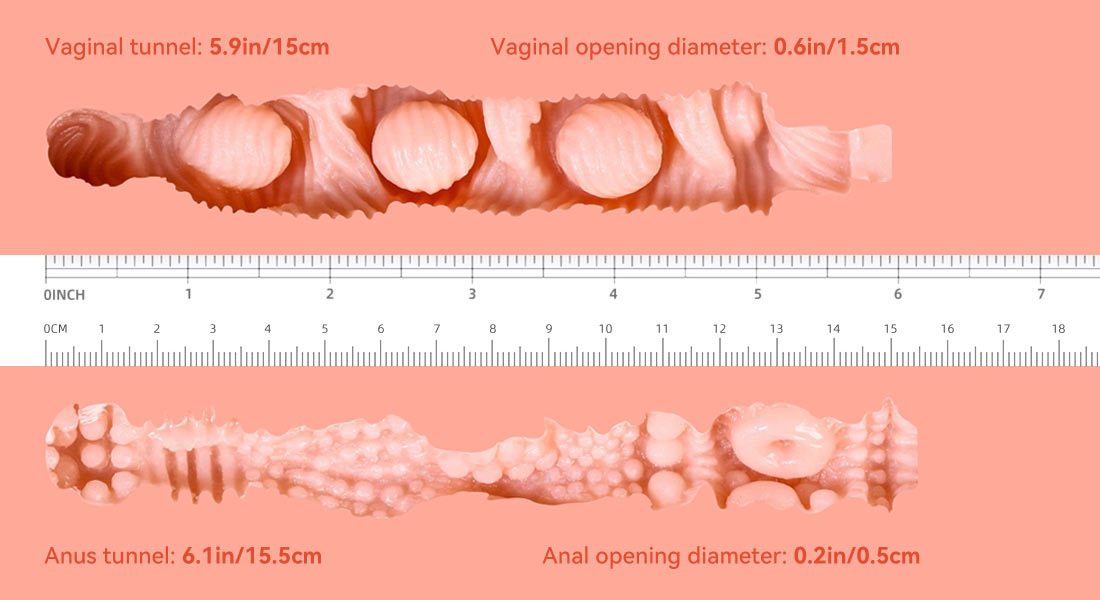 セシリアの柔らかな膣壁はひもで覆われた6つの伸縮性のある大きなビーズがはめ込まれており、強烈な突きの感覚をもたらします。射精するごとに、あなたの固い陰茎は6つのビーズがどれほど素晴らしいのかを感じるでしょう。内部にある多くの突起部と湾曲部は、言い表せない程の刺激をあなたに体験させてくれるでしょう。